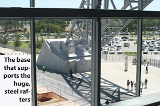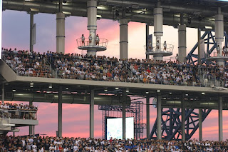 Even mother nature cooperated with a beautiful sunset sky to show through the openings at the western end of the stadium.